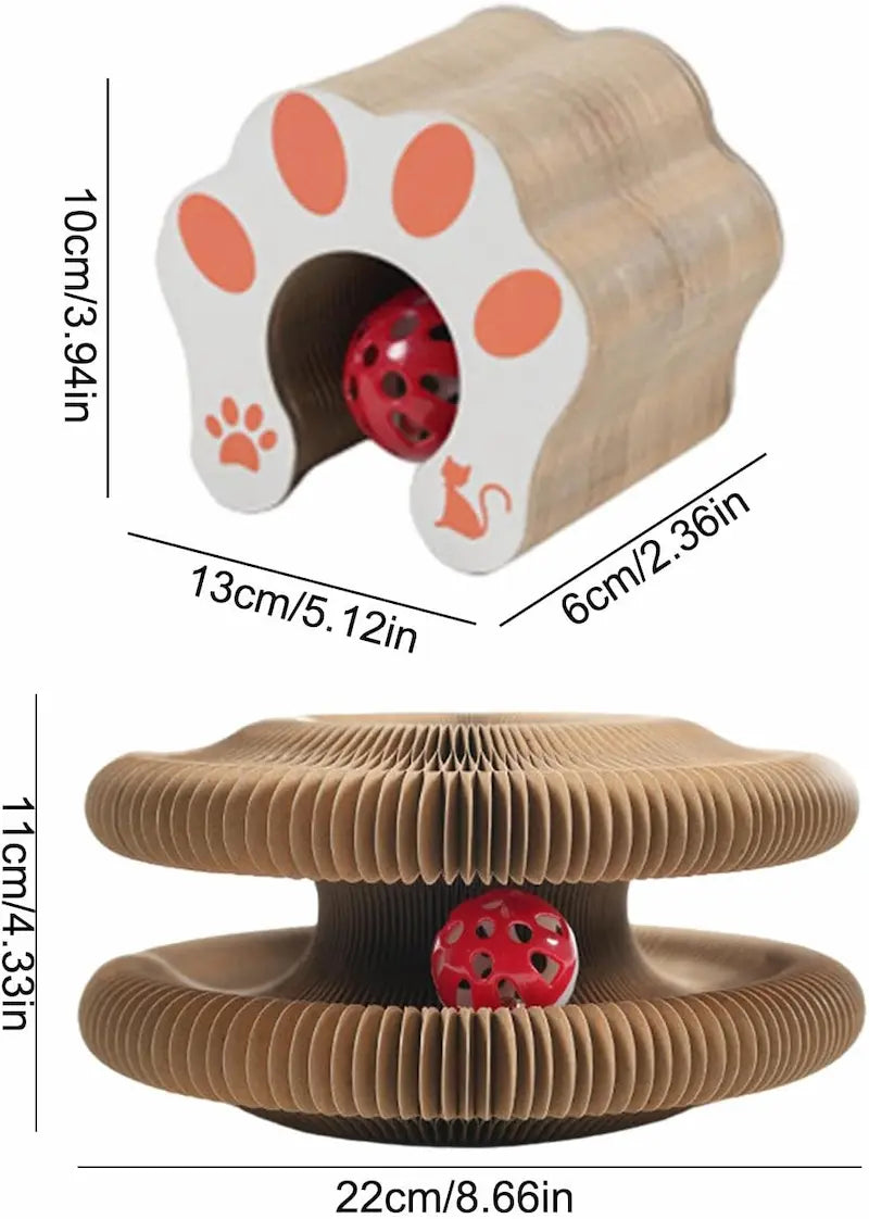 Fini les jouets qui traînent et les meubles abîmés. Grâce à sa conception intelligente en accordéon, il change de forme selon les envies de votre chat : un tunnel pour chasser, ou un lit rond douillet pour la sieste.
